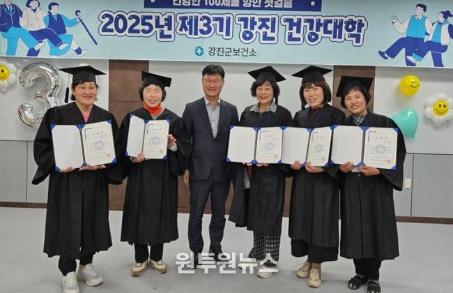 한준호 강진군보건소장은 “지난 2학기 동안 열정적으로 참여해주신 모든 수강생 여러분께 감사드린다”며 “건강대학에서 배운 내용을 생활 속에서 꾸준히 실천해 가족과 이웃의 건강까지 지켜주는 건강리더로 활약해주시길 바란다”고 말했다.