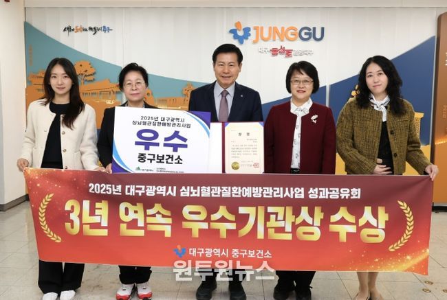(원투원뉴스) 대구 중구보건소는 지난 4일 열린 2025년 심뇌혈관질환예방관리사업 성과 평가‘에서 우수기관상을 수상했다.