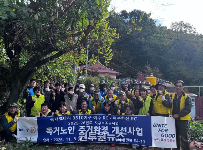 한편 여수로타리클럽와 여수한산로타리클럽은 평소 어려운 이웃을 위해 후원품 기부와 집수리, 동네 환경정비 등 다양한 나눔과 봉사활동을 펼치고 있다.