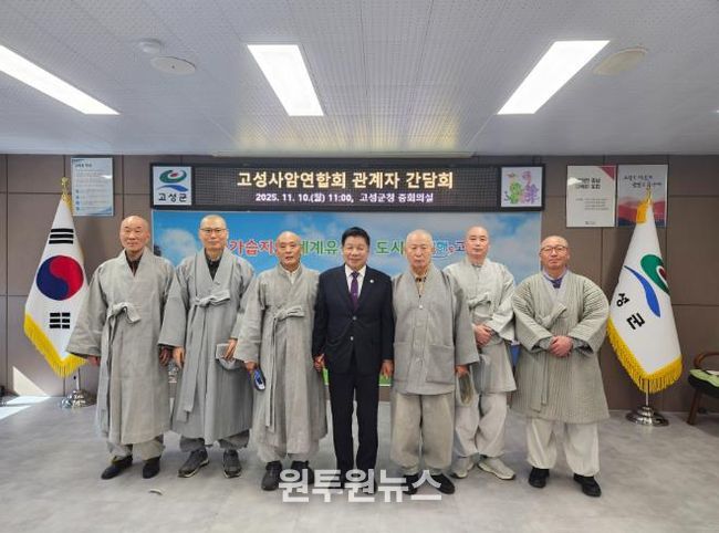 (원투원뉴스) 고성군은 11월 10일, 고성군청 중회의실에서 고성사암연합회(회장 약수암 수운스님)와 간담회를 개최하고, 산불 예방을 위한 협력 방안을 논의했다.