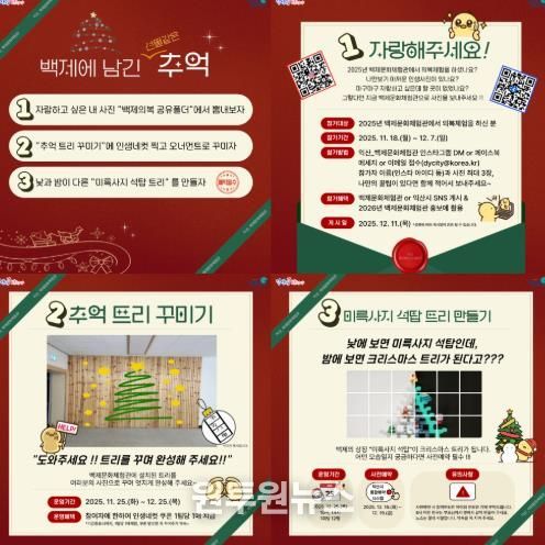 시 관계자는 "이번 프로그램은 따뜻한 연말 분위기 속에서 한 해를 마무리하고, 백제 문화의 감성을 즐길 수 있는 시간이 될 것"이라며 "가족 단위 방문객과 시민들에게 선물 같은 추억을 선사하겠다"고 말했다.