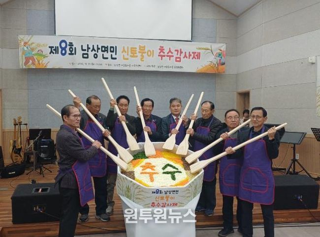 남상 감악 풍물패의 흥겨운 풍물 공연을 시작으로, 남상면민의 안녕을 기원하는 추수감사 제례와 이어진 오찬 시간에는 면민 화합을 상징하는 대형비빔밥 퍼포먼스가 펼쳐졌다.
