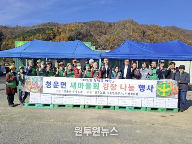 이번 행사는 지역 내 취약계층에게 따뜻한 겨울을 선물하고자 마련된 것으로, 청운면 새마을지회 지도자·부녀회장 및 청운면사무소, 청운농협 관계자, 청운면 지역사회보장협의체 위원 등 40여 명이 참여해 700kg의 김장을 정성껏 담았다.