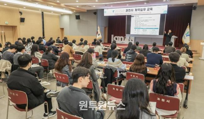 (원투원뉴스) 과천시는 지난 11일, 시청 대강당에서 신규 임용 공무원과 시청 및 출연‧산하기관 계약 담당자 등 100여 명이 참석한 가운데 ‘2025년 지방계약 실무교육’을 진행했다.