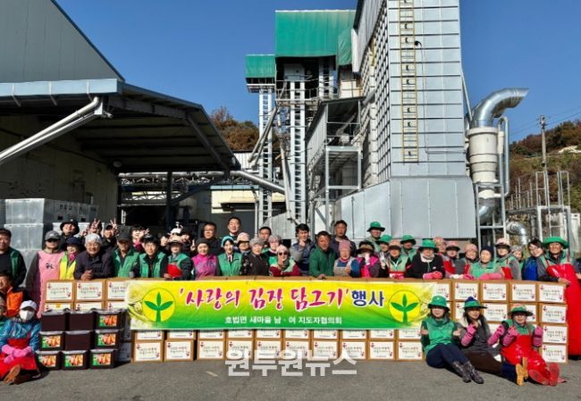 (원투원뉴스) 이천시 호법면은 지난 11월 11일 호법농협 미곡처리장에서 ‘사랑의 김장 나눔’ 행사를 열고 지역의 어려운 이웃들에게 따뜻한 손길을 전했다. 이번 행사는 호법면 새마을남녀협의회와 호법면 지역사회보장협의체, 호법농협 및 관계 공무원 등이 참여했다.