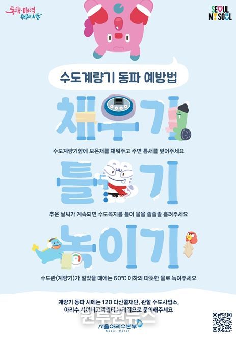 이회승 서울아리수본부장은 “지난해 동파 취약지역을 중심으로 사전 예방 활동을 펼치고, 시민들을 대상으로 동파예방 수칙을 적극 홍보한 결과 동파 건수가 전년 대비 33% 감소했다”라며 “올해는 한파 예보 단계별 안내와 상황실 운영, 취약지역 집중 관리, 생활 속 예방수칙 홍보를 강화해 수도계량기 동파를 효과적으로 예방하겠다”고 말했다.
