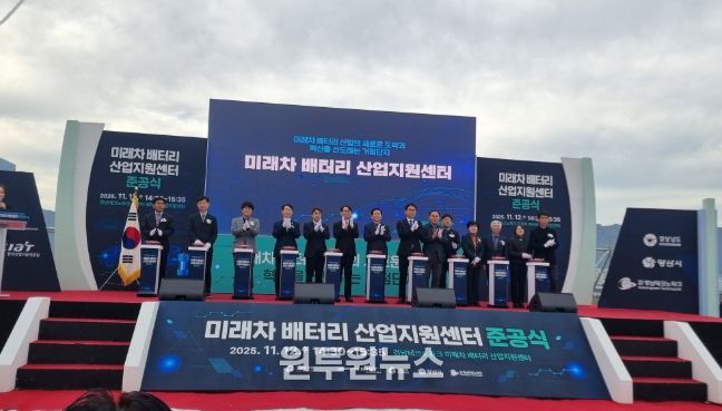 (원투원뉴스) 경남도는 사용 후 배터리 성능시험과 E-모빌리티 기술 지원을 위한 ‘미래자동차 배터리 산업지원센터’ 준공식을 12일 양산 가산일반산업단지에서개최했다고 밝혔다.