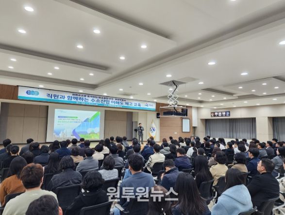 (원투원뉴스) 영광군은 11월 12일 수요일 군청 3층 대회의실에서 150여 명의 직원들이 참석한 가운데 미래먹거리산업으로 전략적 육성 중인 청정수소산업의 추진 방향 및 수소특화단지 조성에 대한 현황 등 관련 교육을 실시했다.