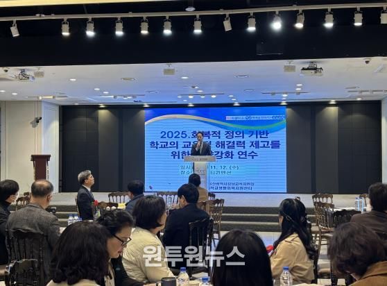 (원투원뉴스) 울산 강남교육지원청은 12일 울산시티컨벤션에서 초등학교 교감을 대상으로 ‘회복적 정의 기반 학교의 교육적 해결력 제고를 위한 역량 강화 연수’를 열었다.