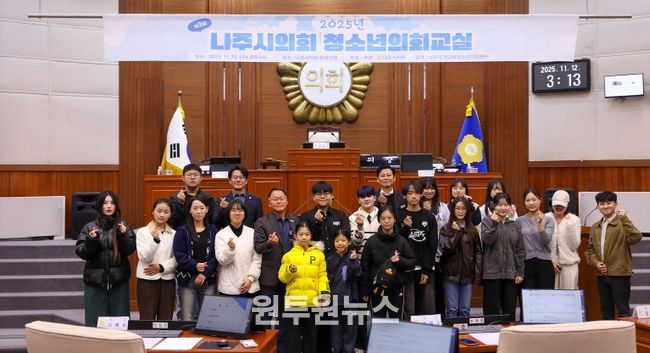 (원투원뉴스) 나주시의회는 12일 나주시학교밖청소년지원센터 청소년들의 참여로 ‘2025년 제3회 나주시의회 청소년 의회교실’을 성황리에 마쳤다.