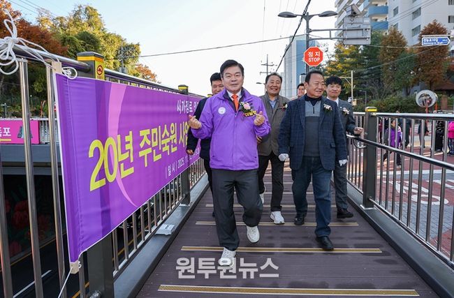 (원투원뉴스) 서울 동대문구는 12일 주민들의 오랜 숙원사업이었던 사가정로 안전보행로 개통식을 개최했다. 이날 행사에는 이필형 동대문구청장을 비롯해 지역구 의원, 주민 등이 참석해 개통을 함께 축하했다.