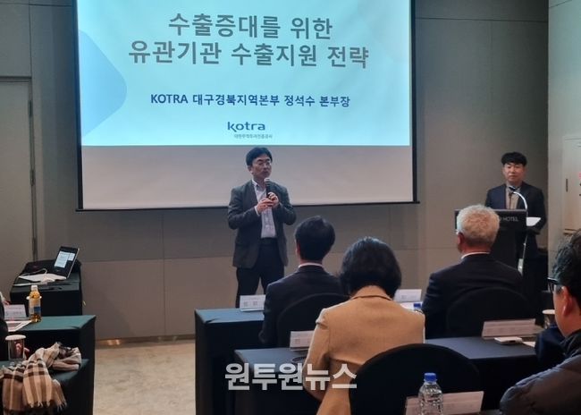 이번 세미나는 도내 수출기업과 관계기관 간 협력을 강화하고 세계 경제 변화 속에서 수출 전략을 모색하기 위해 마련됐으며, 이재훈 경북도 경제통상국장, 여권택 경상북도수출기업협회 회장을 비롯한 임원단, 전재업 경상북도경제진흥원 본부장, 정석수 KOTRA 대구경북지역본부장, 권오영 한국무역협회 대구경북지역본부장 등 관계자 30여 명이 참석했다.