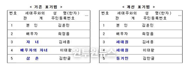 (원투원뉴스) 앞으로는 등·초본 상 가족 관계 표기로 인한 재혼 가정의 사생활 노출을 방지하기 위해 세대주와의 관계 표기 방식이 개선된다.
