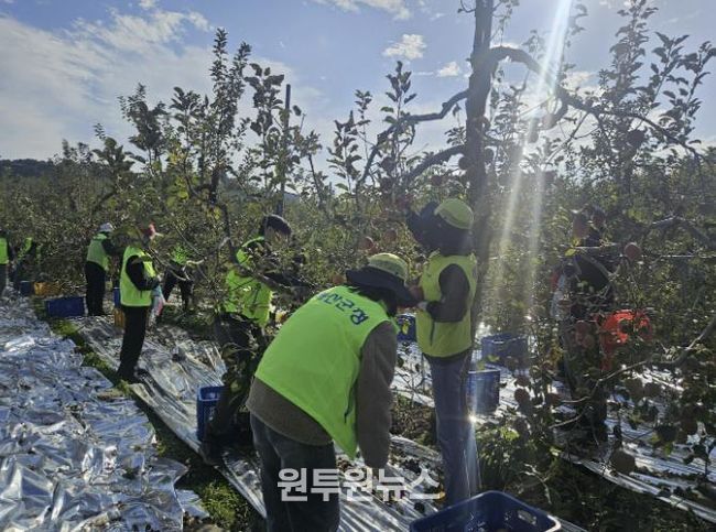 이번 일손돕기에는 김윤환 건축과장을 비롯한 직원 11명이 참여해 사과 따기 작업을 지원했으며, 고령화와 인건비 부담 등으로 어려움을 겪는 농가에 실질적인 도움을 주기 위해 추진됐다.