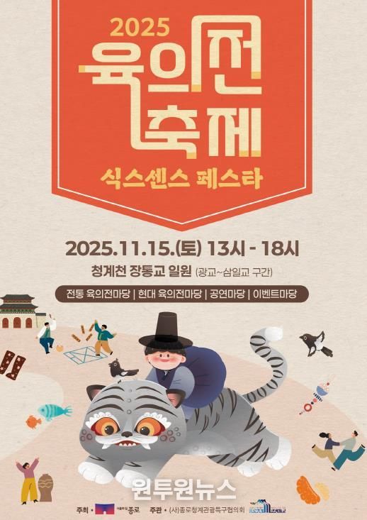 (원투원뉴스) 종로구는 11월 15일 13시부터 18시까지 청계천 장통교 일원(관철동 젊음의 거리)에서 '2025년 육의전 축제 ‘식스센스 페스타(Six Sense Festa)’'를 개최한다.