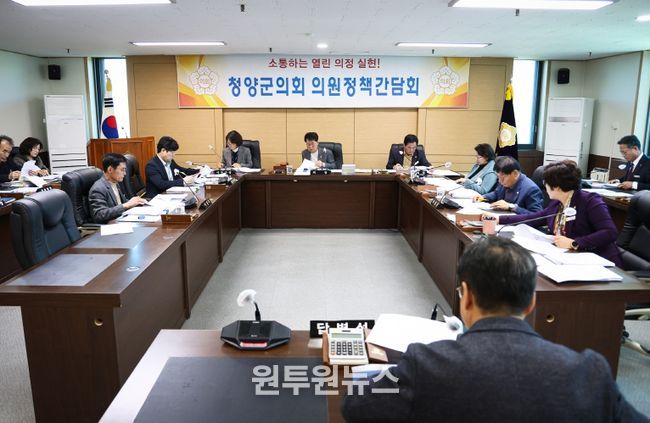 (원투원뉴스) 청양군의회는 12일 제316회 정례회를 앞두고 의원 및 부서장이 참석한 가운데 의원 정책간담회를 개최했다.