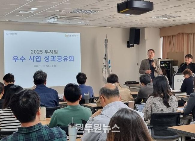 (원투원뉴스) (재)김포문화재단은 지난 11월 11일, 김포아트홀 세미나실에서 '2025년도 부서별 우수사업 성과공유회'를 개최했다.