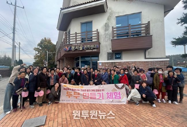 (원투원뉴스) 완주지역자활센터(센터장 김진왕)가 지난 10일과 12일 이틀간 완주군 용진읍 간중리 봉서골 정보화마을(도계마을)에서 노인맞춤돌봄서비스 참여 어르신 106명을 대상으로 ‘전통 두부 만들기’ 체험 프로그램을 진행했다.