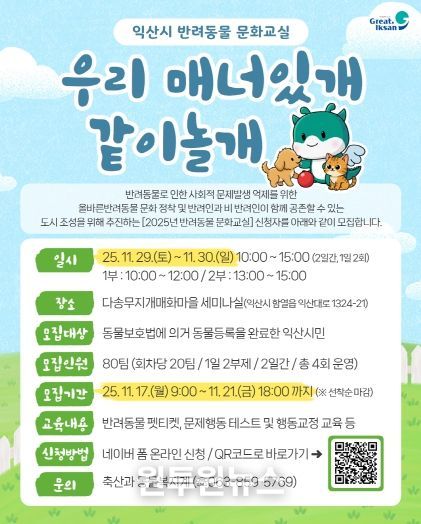 (원투원뉴스) 익산시가 올바른 반려동물 문화 확산을 위한 교육의 장을 연다.