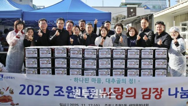 (원투원뉴스) 수원시 장안구 조원1동은 12일 조원1동 환경관리원 쉼터에서 ‘2025년 사랑의 김장 나눔 행사’를 진행했다.