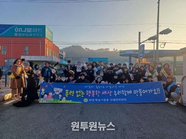 (원투원뉴스) 양평군 단월면 바르게살기운동위원회와 청소년지도위원은 지난 12일 단월중학교 앞에서 ‘학교폭력 근절’을 주제로 한 청소년 보호 캠페인을 실시했다.