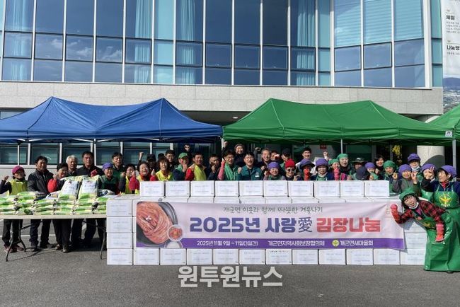 이번 김장 나눔은 개군면 앙덕리 일대 농장에서 새마을회원들이 공동으로 재배한 배추와 무를 수확해 마련한 것으로, 지역의 대표적인 이웃사랑 실천 봉사활동이다. 행사에는 개군면 새마을회원과 지역사회보장협의체 회원, 기관·단체장 등 70여 명이 참여해 따뜻한 나눔을 실천했다.
