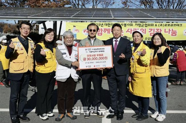 (원투원뉴스) 대한적십자사봉사회 가평군지구협의회는 최근 로보큐브테크㈜가 대한적십자사에 기탁한 3,000만 원을 활용해 ‘희망풍차 사랑의 김장 나눔’ 행사를 열었다.