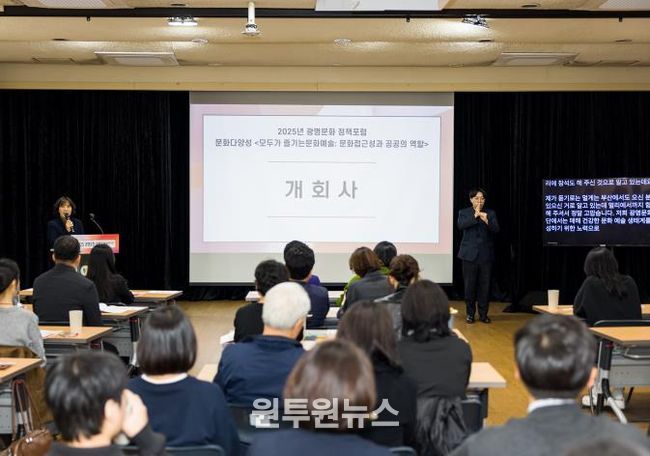 (원투원뉴스) (재)광명문화재단은 11월 12일 수요일 광명시민회관에서 ‘2025년 광명문화 정책포럼, 문화다양성 '모두가 즐기는 문화예술: 문화접근성과 공공의 역할'’을 성황리에 개최했다고 밝혔다.