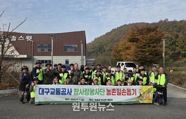 (원투원뉴스) 대구교통공사는 지난 11월 7일 경북 청송군 월정리와 인지리 지역 사과재배 농가를 찾아 농번기 일손 돕기 봉사활동을 실시했다.