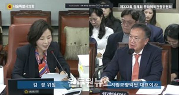 (원투원뉴스) 서울시의회 문화체육관광위원회 김경 의원은 11월 12일 제333회 정례회 행정사무감사에서 서울시립교향악단(서울시향)의 해외공연 성과를 점검하며, 향후 발전 방향과 제도적 뒷받침 필요성을 집중적으로 질의했다.