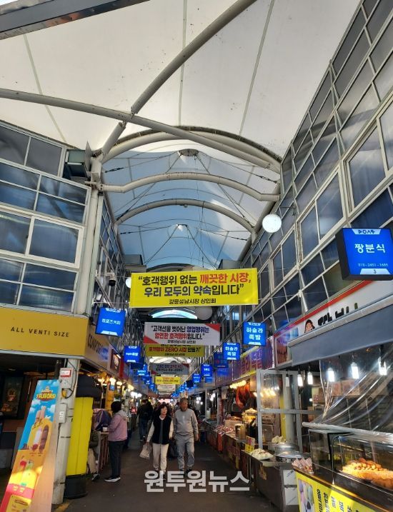 (원투원뉴스) 강릉성남시장상인회(회장 배봉식)는 최근 상인들이 스스로 호객행위를 하지 않겠다는 내용을 담은 현수막 10개를 시장 주요 구간(공주상회~컴포즈커피)에 게시했다.