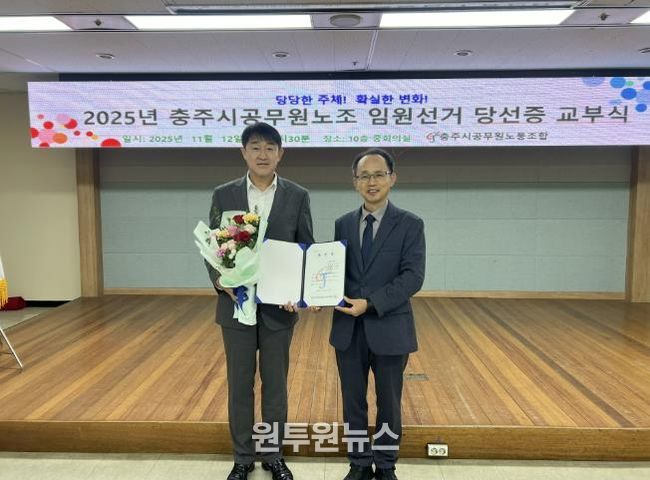 박정식 위원장은 러닝메이트로 출마한 수석부위원장 조경욱, 사무국장 장석진 후보와 함께 2026년 1월 1일부터 3년간 제9대 충주시공무원노동조합을 이끌 예정이다.