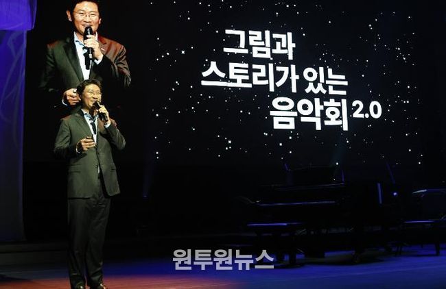 이번 ‘그림과 스토리가 있는 음악회 2.0'은 1525석의 객석 중 촬영석을 뺀 모든 좌석이 가득 찼고, 2시간 20분 가량 진행됐다. 11번째 마지막 곡 공연이 끝났을 때 앵콜이 나오자 이 시장은 네 명의 성악가들과 함께 가요 '그대 그리고 나'를 부른 뒤 주세페 베르디의 오페라 '라트라비아타'의 '축배의 노래'를 이탈리아어로 불렀다.