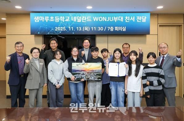 (원투원뉴스) 원주시는 샘마루초등학교 학생대표단을 통해 네덜란드 스하르베르헌(Schaarsbergen)에 위치한 ‘반 휘츠 연대(Van Heutsz Regiment)’ 예하 ‘WONJU’ 중대에 6·25전쟁 참전 감사 서한을 전달한다.