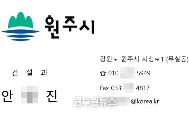 (원투원뉴스) 원주시는 최근 관내에서 공무원을 사칭한 사기 시도 사례가 다수 발생함에 따라, 시민과 지역업체에 각별한 주의를 당부했다.
