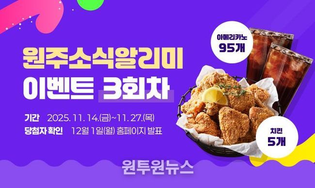 시는 시민과의 소통을 강화하고 원주소식알리미 서비스를 활성화하기 위해 11월 14일부터 27일까지 구독 이벤트를 진행한다.