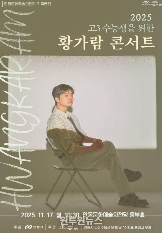 (원투원뉴스) 안동문화예술의전당은 2026학년도 대학수학능력시험을 마친 고3 수험생들을 위로하고 격려하기 위한 공연으로, 황가람 콘서트를 마련했다.