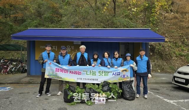 ‘행복이 자라는 나눔 텃밭’은 산본가야2차 아파트 단지 내 유휴 부지(약 140㎡)를 주택관리공단으로부터 제공받아, 협의체 위원들이 직접 다양한 농작물을 재배하고 수확하여 어려운 이웃과 나누는 수리동만의 특화사업이다. 올해는 8월에 가을무 모종을 심어 정성껏 가꾸어왔으며 풍성한 수확의 기쁨을 함께 나누게 됐다.