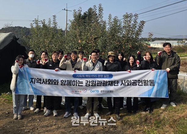 (원투원뉴스) 강원관광재단은 지역사회 상생 발전을 위해 11월 13일, 춘천시 신북읍 소재 사과 농가를 방문하여 농촌일손돕기 활동을 펼쳤다.
