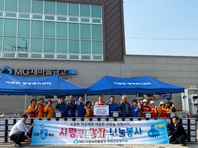 먼저 14일 이원새마을금고 희망나눔봉사회(이사장 이재헌, 봉사회장 유재숙)가 지역 내 취약계층의 따뜻한 겨울나기를 돕기 위해 김장김치(12L) 100통을 직접 담가 옥천읍지역사회보장협의체(공공위원장 곽상혁, 민간위원장 송유정)에 기탁했다.