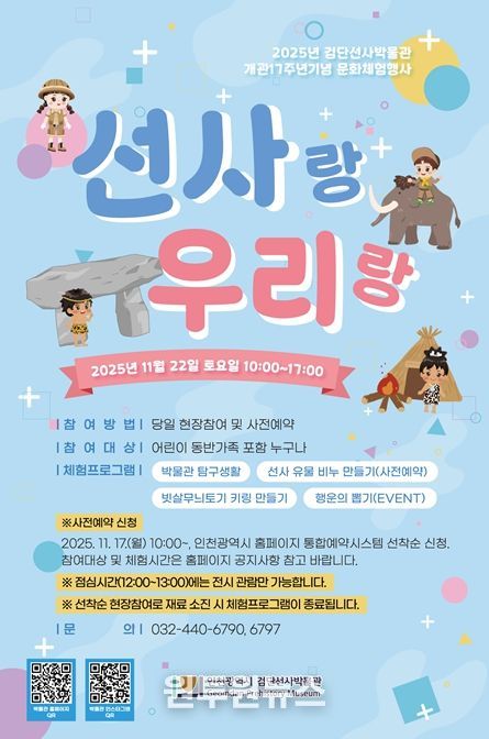 조규명 시 검단선사박물관장은 “개관 17주년을 맞이해 마련한 이번 체험 행사를 통해 어린이와 시민들이 즐겁게 선사문화를 배우는 유익한 시간이 되길 바란다”고 말했다.