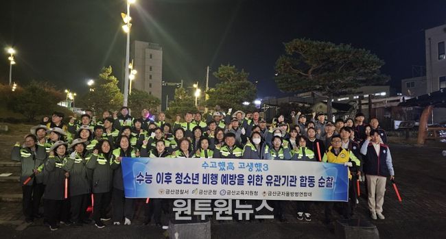 (원투원뉴스) 금산군은 청소년들이 건전한 분위기 속에서 시험을 치르고 안전하게 귀가할 수 있도록 2025학년도 대학수학능력시험일이 치러진 지난 13일 금산읍과 중부대 일원에서 청소년 유해환경 점검에 나섰다.