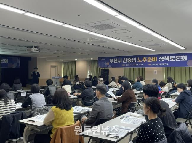 (원투원뉴스) 부천시는 지난 13일 시청 소통마당에서 ‘신중년 노후준비의 현황과 정책방향’을 주제로 ‘부천시 신중년 노후준비 정책토론회’를 열었다. 이번 토론회는 신중년 세대의 노후 대비 실태를 점검하고, 실질적인 정책 대안을 모색하기 위해 마련됐다.