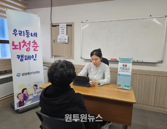 (원투원뉴스) 의정부시 장암동주민센터는 11월 13일 의정부 치매안심센터와 협력해 노인들의 뇌 건강을 위한 ‘뇌청춘 캠페인’을 실시했다.