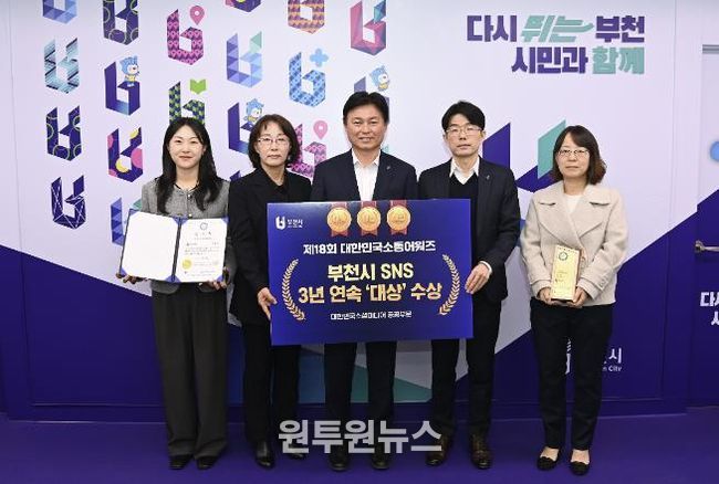 (원투원뉴스) 부천시는 지난 13일 ‘제18회 대한민국 소통 어워즈–대한민국 소셜미디어 대상’에서 3년 연속 공공부문 대상을 수상했다고 14일 밝혔다.
