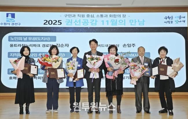 (원투원뉴스) 수원시 권선구는 지난 14일, 권선구청 대회의실에서 ‘권선공감 11월의 만남’을 개최하여 권선구 발전과 지역사회 공헌에 기여한 구민 및 공직자에 대한 표창 수여를 진행하고 구민과 행정이 함께하는 권선구의 모습을 보여줬다.