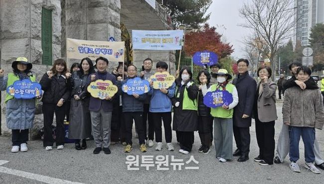 (원투원뉴스) 의정부도시교육재단은 2025학년도 대학수학능력시험이 치러진 지난 13일, 관내 수험생들을 위해 고사장 앞 응원과 심리지원, 응원키트 전달 등 다양한 격려 활동을 진행했다고 밝혔다.