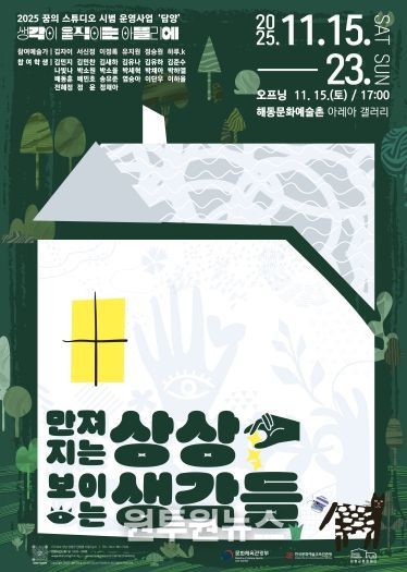 (원투원뉴스) 담양군문화재단(이사장 정철원)은 ‘2025 꿈의 스튜디오 시범운영 사업'결과발표 전시 '만져지는 상상, 보이는 생각들'을 오는 23일까지 해동문화예술촌 아레아갤러리에서 개최한다고 밝혔다.