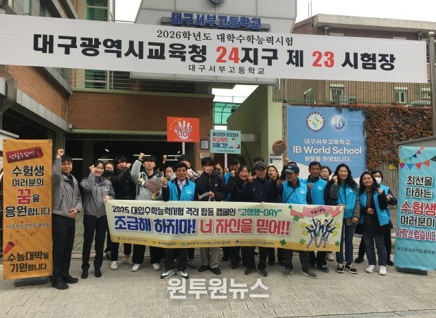(원투원뉴스) 대구 서구 청소년지도협의회(회장 황만태)는 지난 12일, 서부고등학교 정문에서 학생들의 수능 예비 소집일 시간에 맞춰 수험생 응원 및 선도·보호 합동 캠페인을 실시했다.