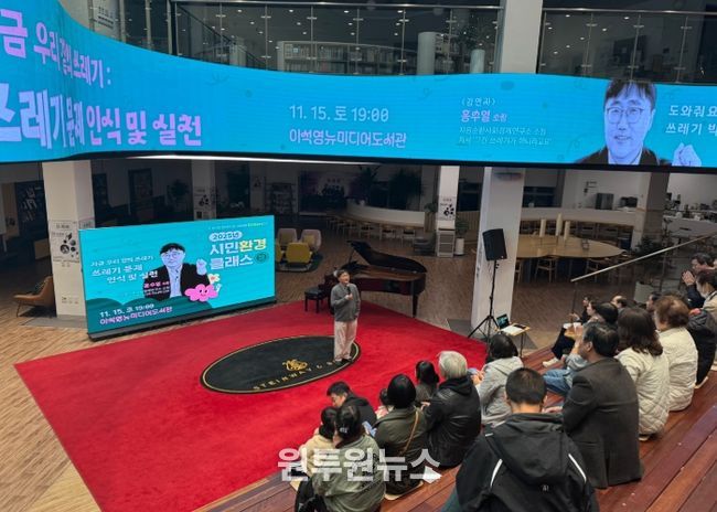 (원투원뉴스) 남양주시는 15일 이석영뉴미디어도서관에서 홍수열 자원순환사회경제연구소장의 강연 ‘지금 우리 곁의 쓰레기 : 쓰레기 문제 인식 및 실천’을 마지막으로 ‘2025년 시민환경클래스’를 성공적으로 마무리했다고 밝혔다.